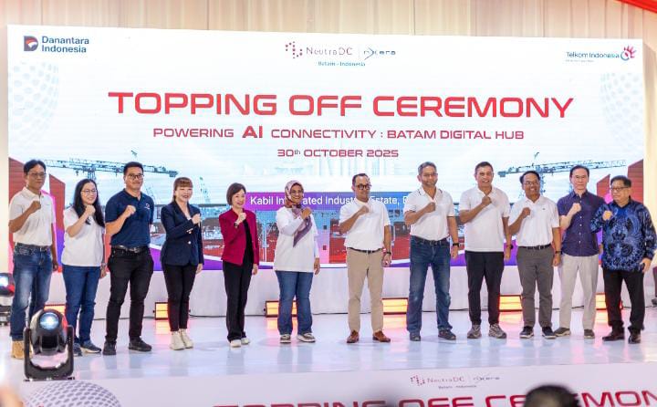 BTM.CO.ID, BATAM –  PT Teknologi Data Infrastruktur (NeutraDC Nxera Batam), anak perusahaan PT Telkom Indonesia (Persero) Tbk melalui PT Telkom Data Ekosistem (NeutraDC), resmi melaksanakan Topping Off Ceremony bertajuk “Powering AI Connectivity: Batam Digital Hub”. Acara ini menandai pencapaian penting dalam pembangunan Hyperscale Data Center NeutraDC Nxera Batam di kawasan industri Kabil, Kota Batam.