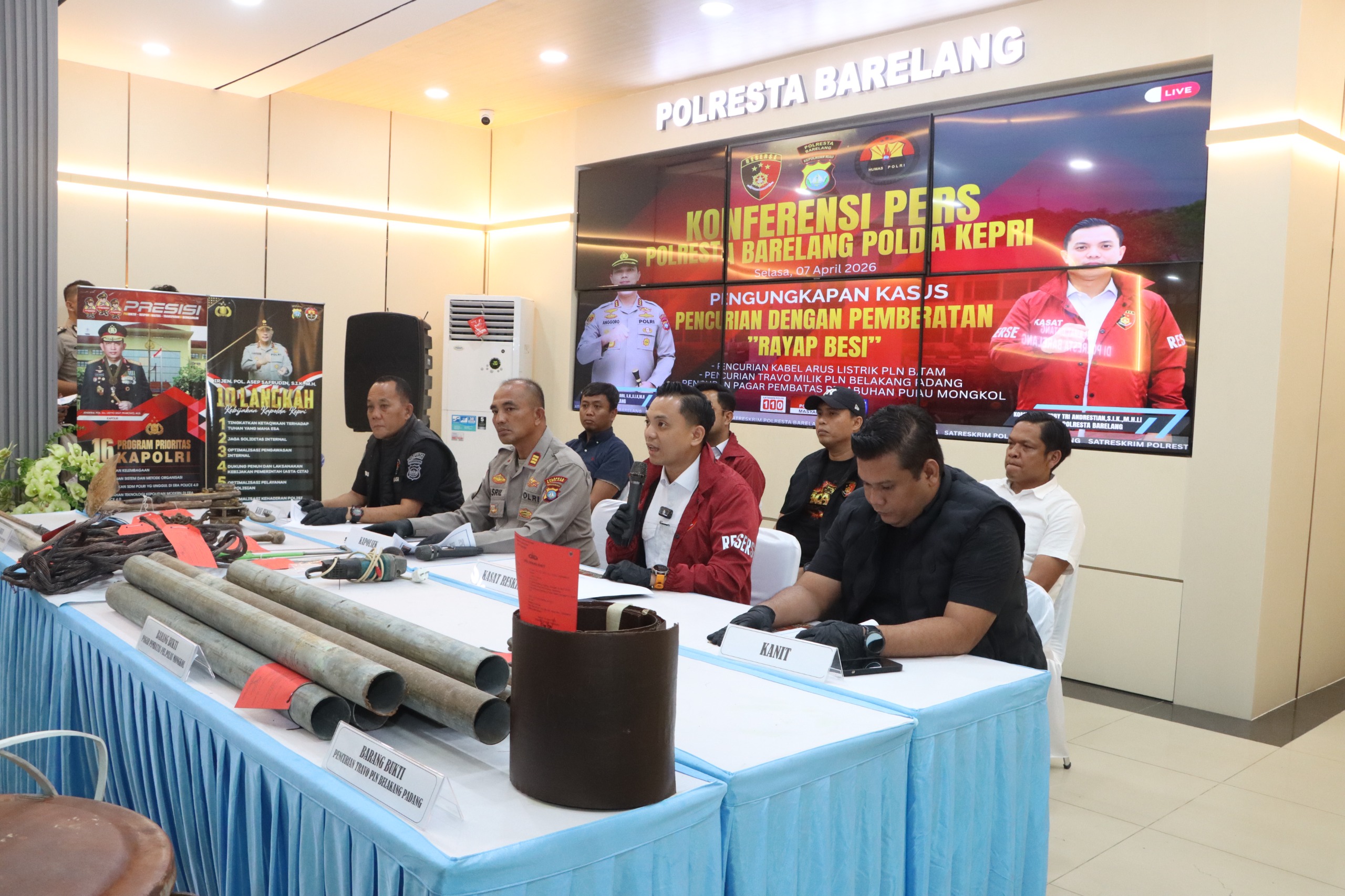Pengungkapan kasus tersebut disampaikan dalam konferensi pers yang digelar di Lobby Polresta Barelang, Senin (7/4/2026), dipimpin Kasat Reskrim Kompol M. Debby Tri Andrestian, didampingi jajaran pejabat dari Polresta Barelang, Polsek Belakang Padang, serta Ditreskrimum Polda Kepri.
