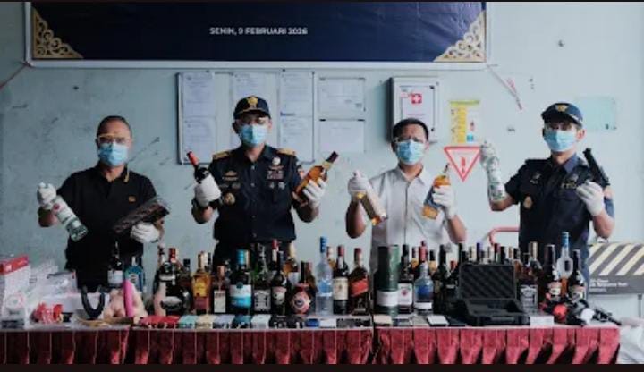 - Barang Kena Cukai Minuman Mengandung Etil Alkohol (BKC MMEA) sebanyak 2.044 botol dan 4 jerigen, dengan nilai perkiraan Rp827,5 juta.