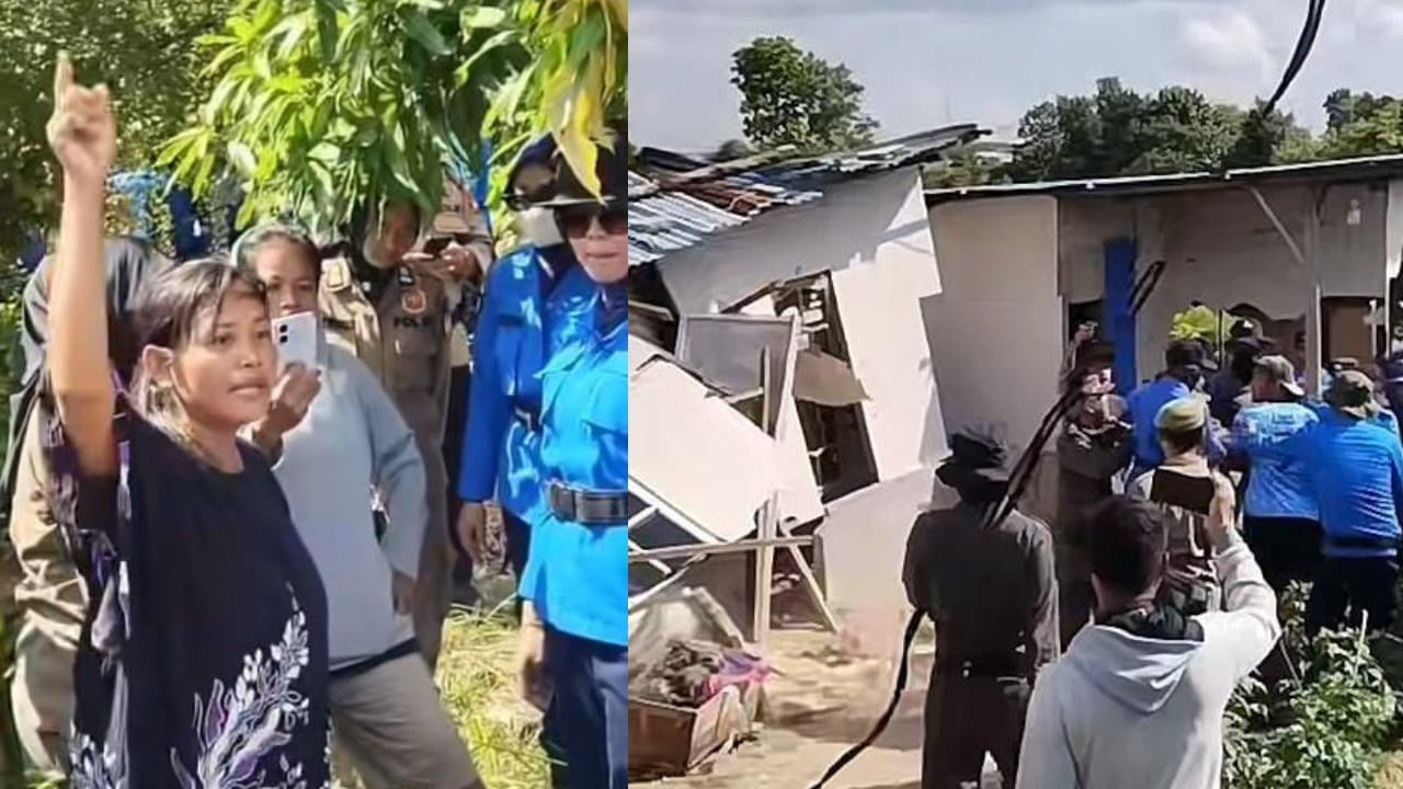 Dalam video yang diunggah akun TikTok @lendra88, seorang ibu rumah tangga yang menjadi korban penggusuran menyampaikan keberatannya. Ia mengaku tidak menerima rumahnya dibongkar tanpa adanya persetujuan.