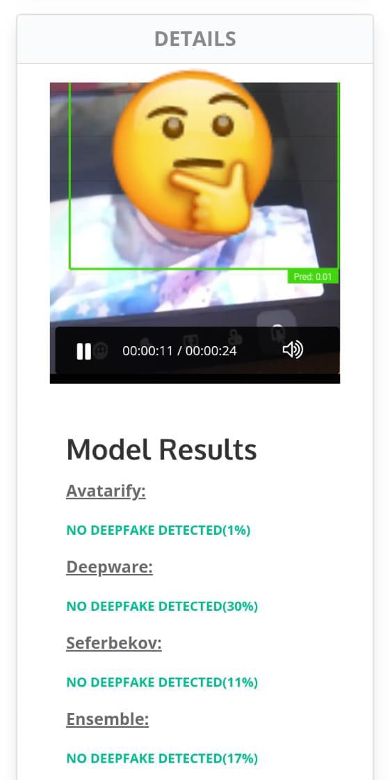 Misalnya, hasil seperti “No Deepfake Detected” dengan tingkat keyakinan tertentu, yang menunjukkan bahwa konten tersebut kemungkinan besar asli atau tidak dimanipulasi oleh AI.